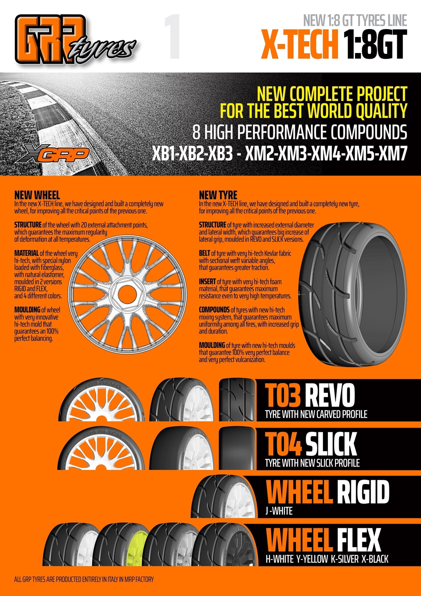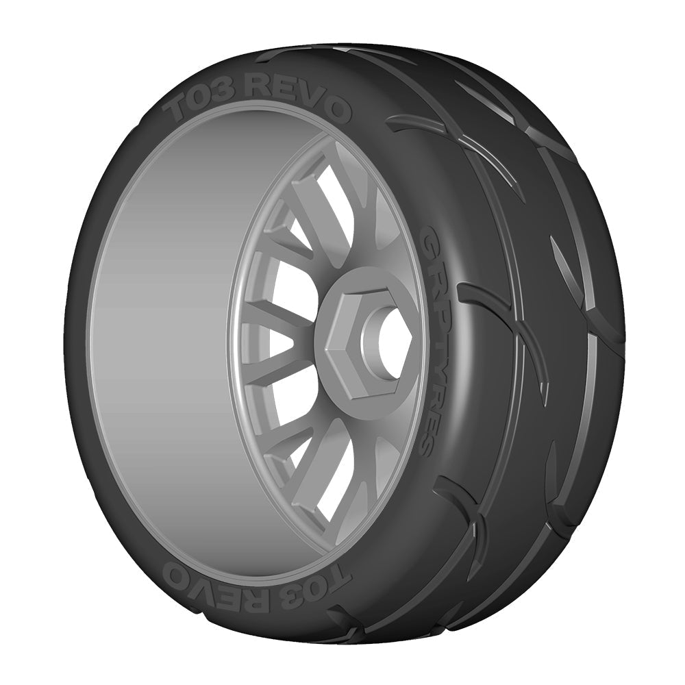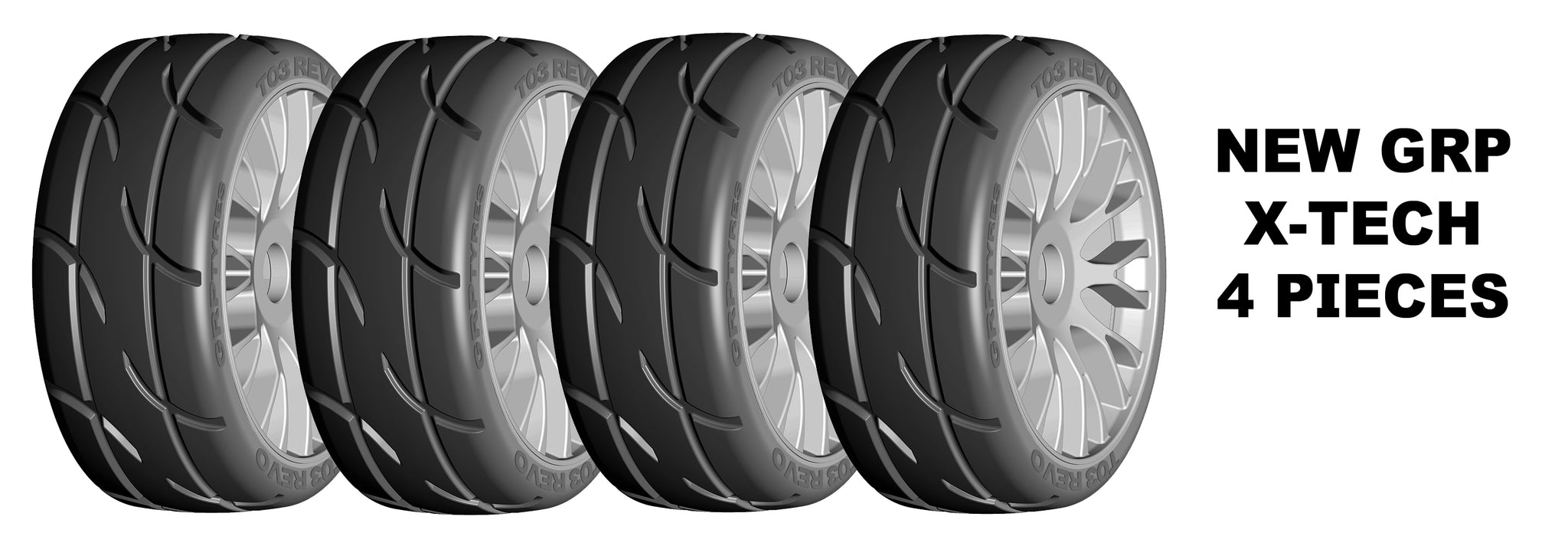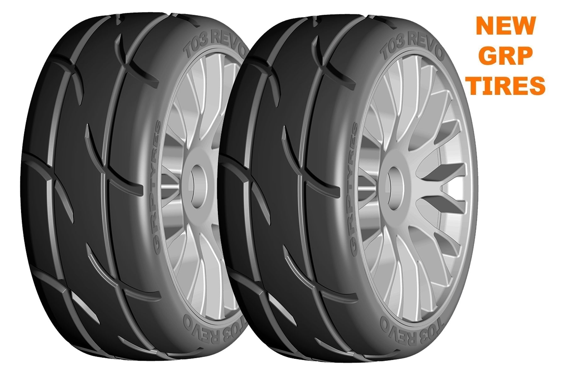 GRP Tyres 1:8 GT New Tread design SoftMedium Silver New Spoke Flex Belted On-Road Rubber Tires GRPGTK03-XM4x2 (4) pieces per package.